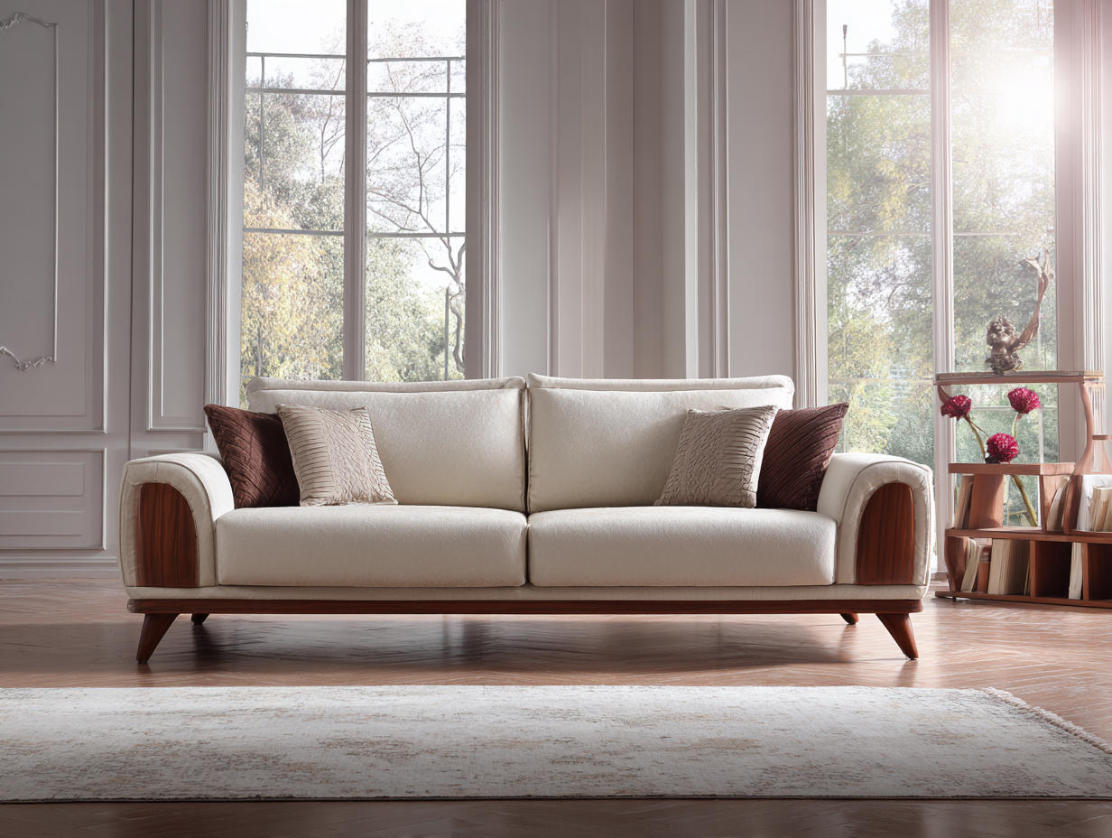 Sofá tapizado de tela 3 plazas 210x90x82 cm - tela - crema/marrón oscuro - para salón - estilo moderno