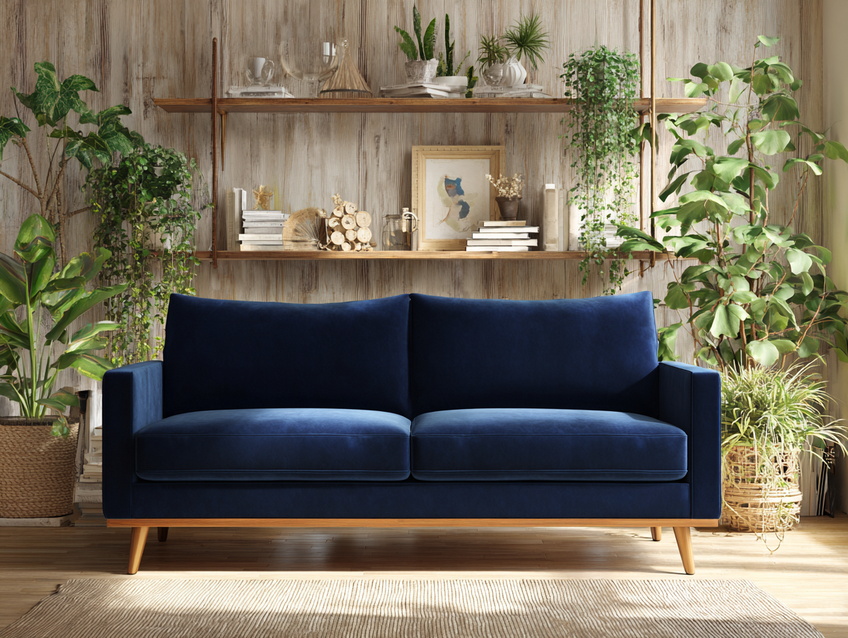 Sofá de tres plazas de tela 200x92x82 cm - azul marino - para salón - diseño contemporáneo