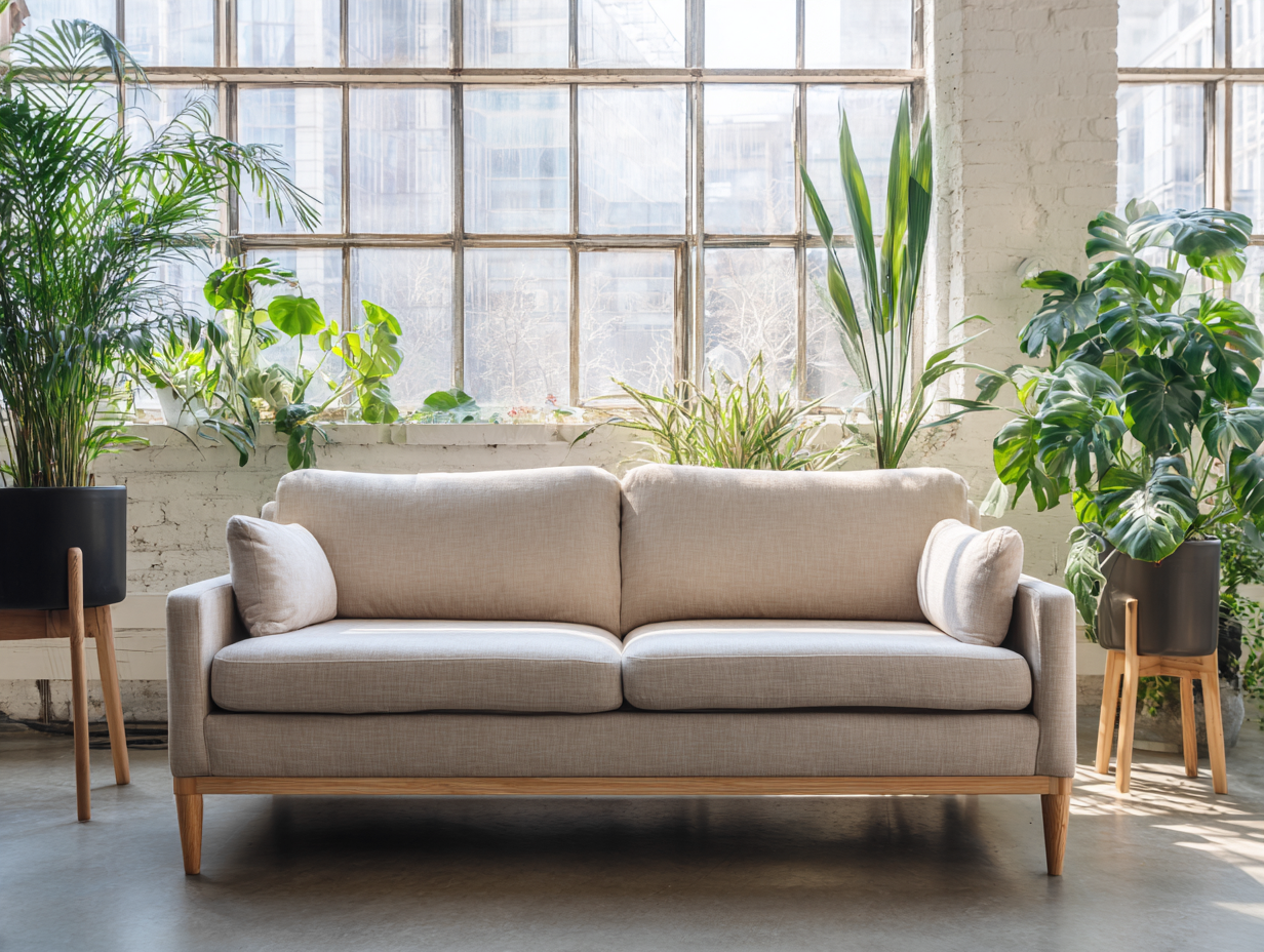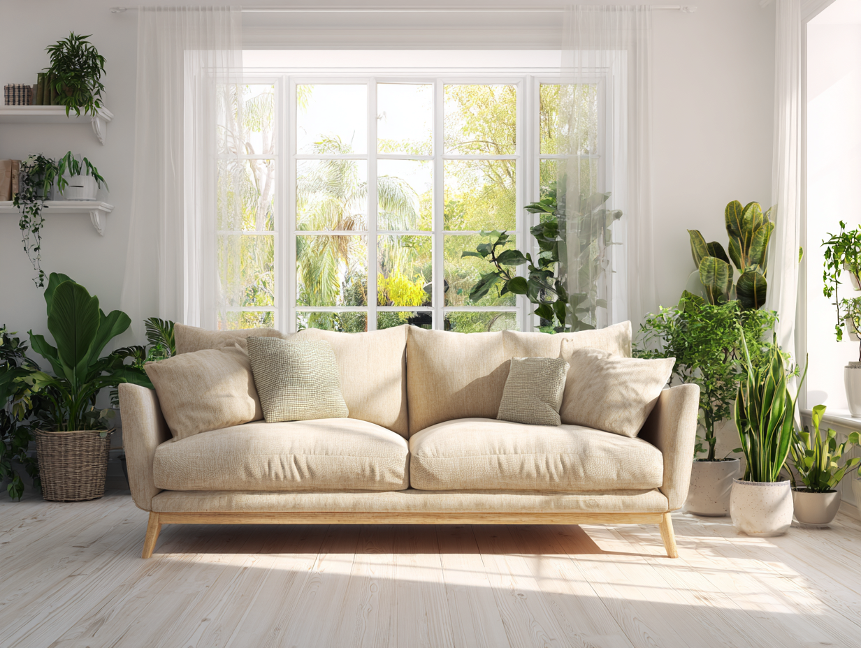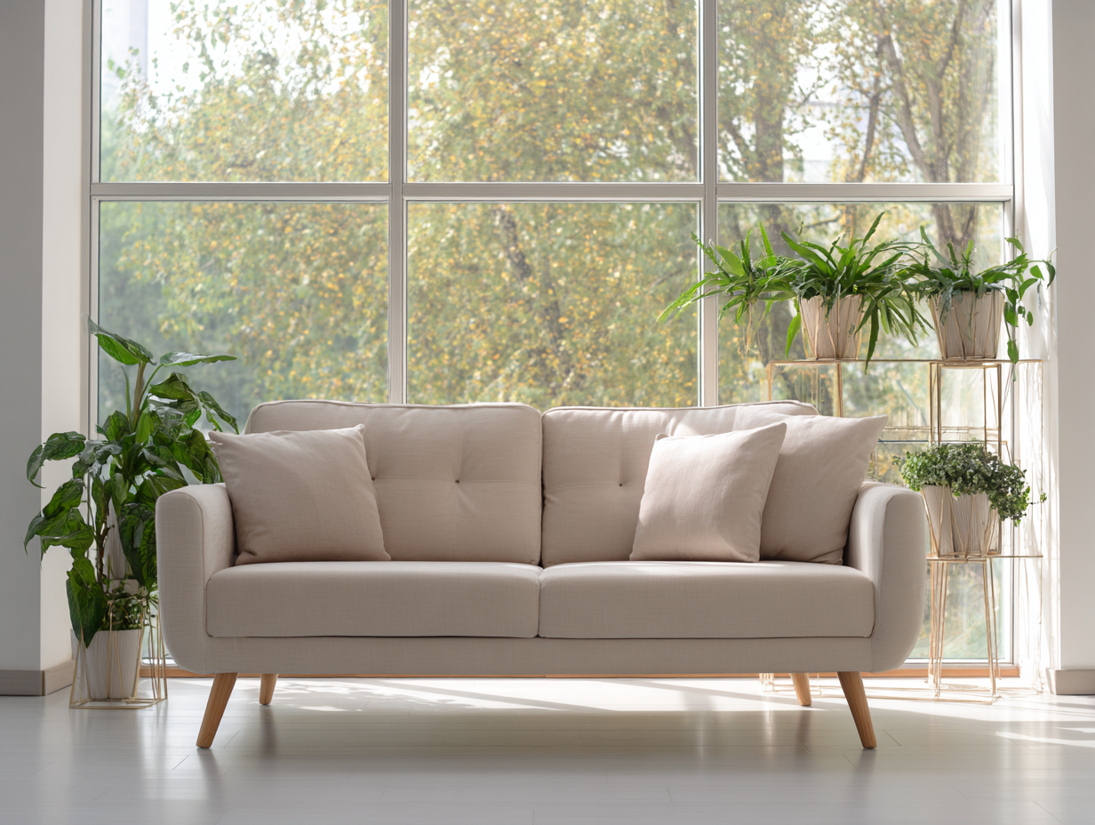 Sofá de tres plazas de tela 215x90x85 cm - color crema/tono natural - para salón - estilo moderno