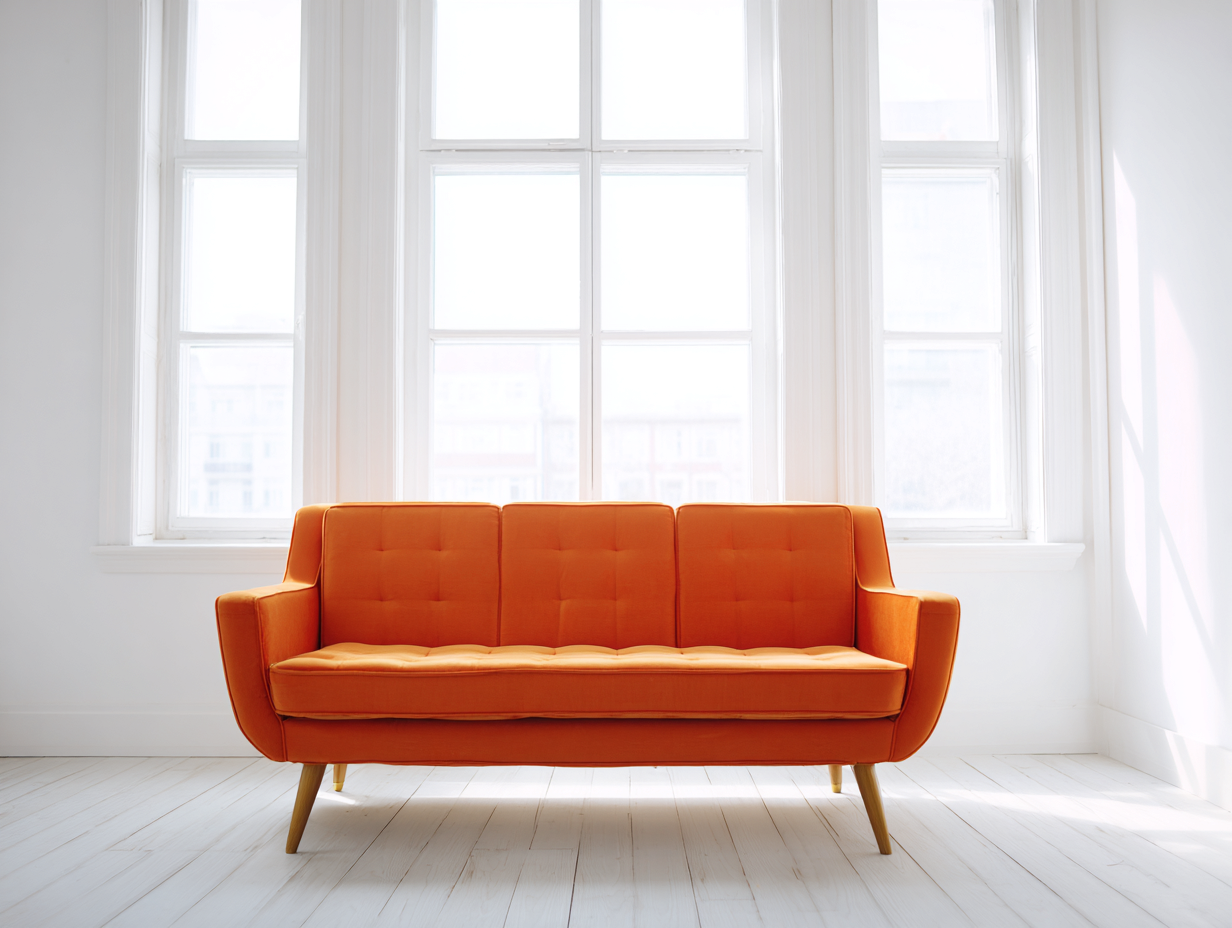 Sofá tapizado 3 plazas 190x80x85 cm - tela - naranja - para salón - diseño moderno