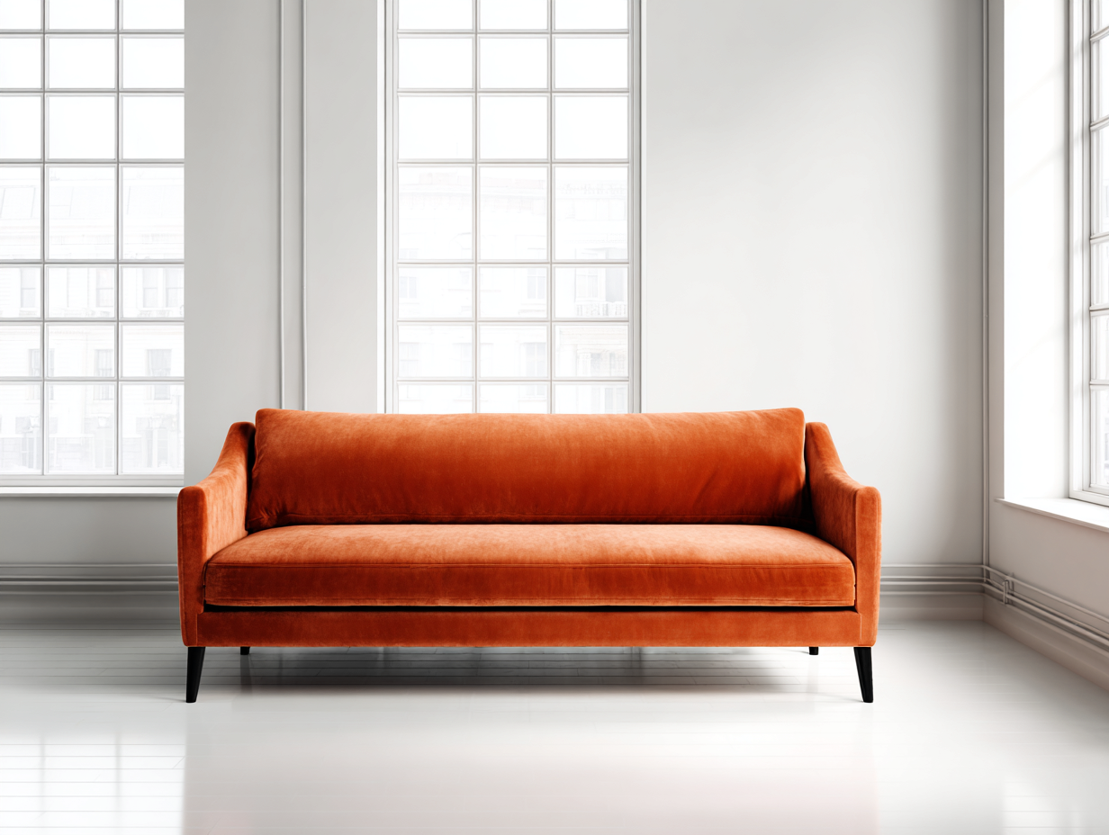 Sofá tapizado de terciopelo 3 plazas 200x85x80 cm - terciopelo - naranja - para salón - estilo moderno