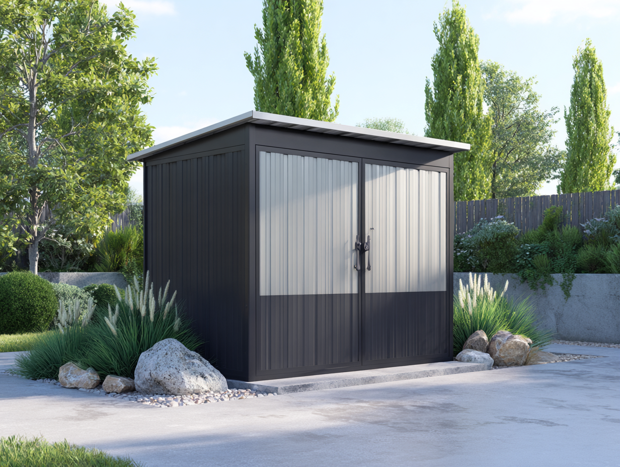 Caseta de jardín metálica 180x120x200 cm - gris/negro - para jardín - diseño compacto